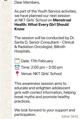 Mestural awarenwss compaign conducted at NKT College by RTn Dr Sari. . .