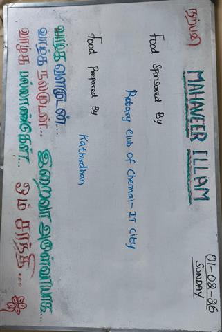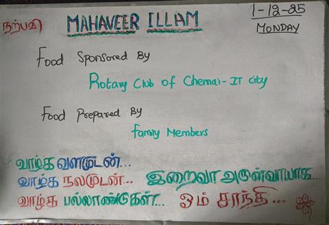 Annadhaan in Mahavir Illam on eight dinner per month for 35 residen. . .