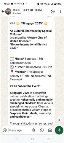 RC of United Chennai organised a cultural program at Spastic soceit. . .