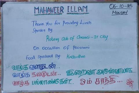 Annadhaan by Rotary Club of Chennai city to all 35 elder residents . . .